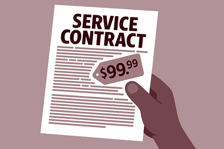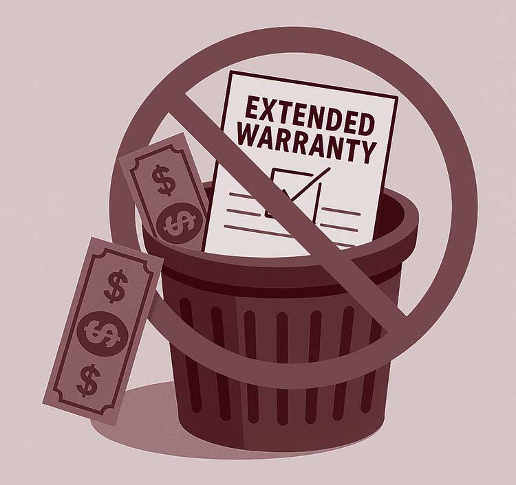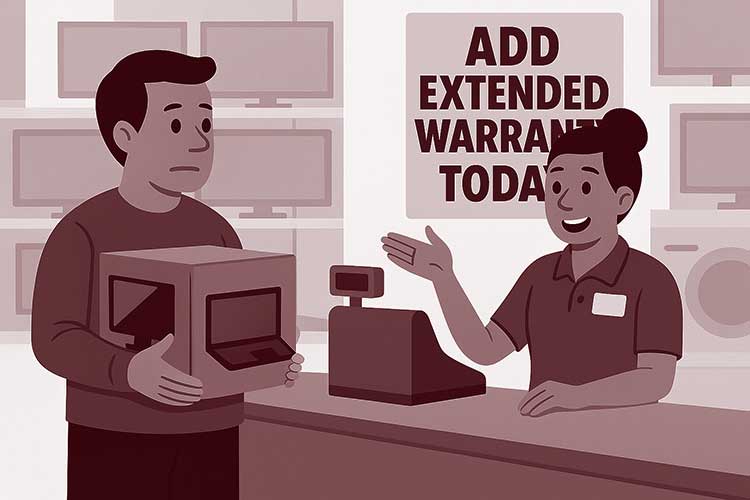 No wonder retailers relentlessly push extended warranties. Home Depot’s best-selling front-loading Whirlpool washing machine runs $699; purchase it on the web, and the retailer urges adding a “Protection Plan” for an extra $100 for a three-year extended warranty. Buy a Samsung TV from BestBuy.com for $329, and at checkout the website recommends “Protect your TV” with a $59.99 two-year plan from Geek Squad or a five-year one for $69.99. Go to the Apple Store and shell out $799 for an iPhone 17 and it’ll offer its popular “AppleCare coverage” for “Peace of mind in every plan”; for $11.99/month or $119.99/year you’ll get insurance against accidental breakage, theft, or loss. Amazon offers service contracts for even small purchases like portable car battery jump starter kits that cost less than $40.